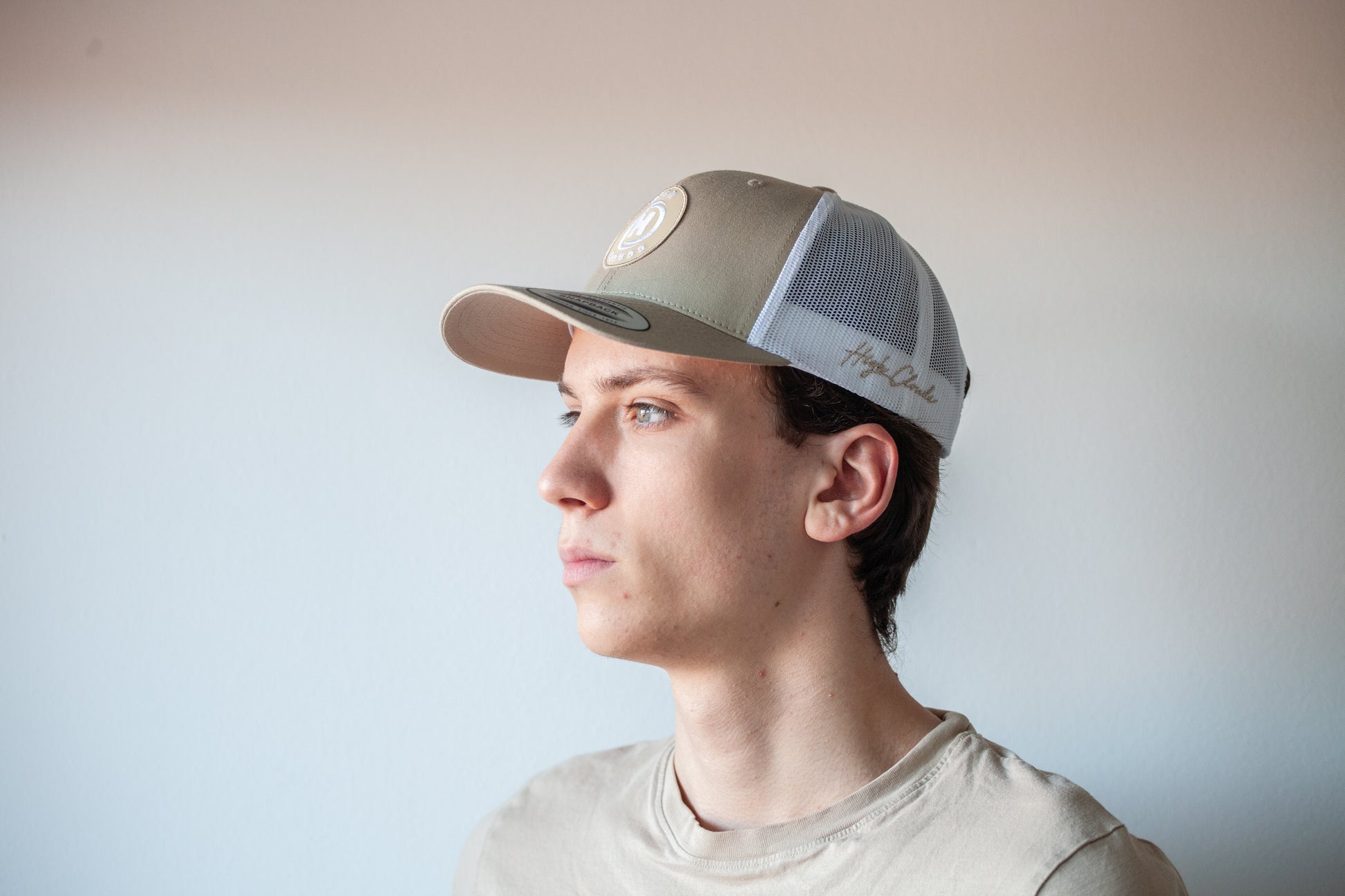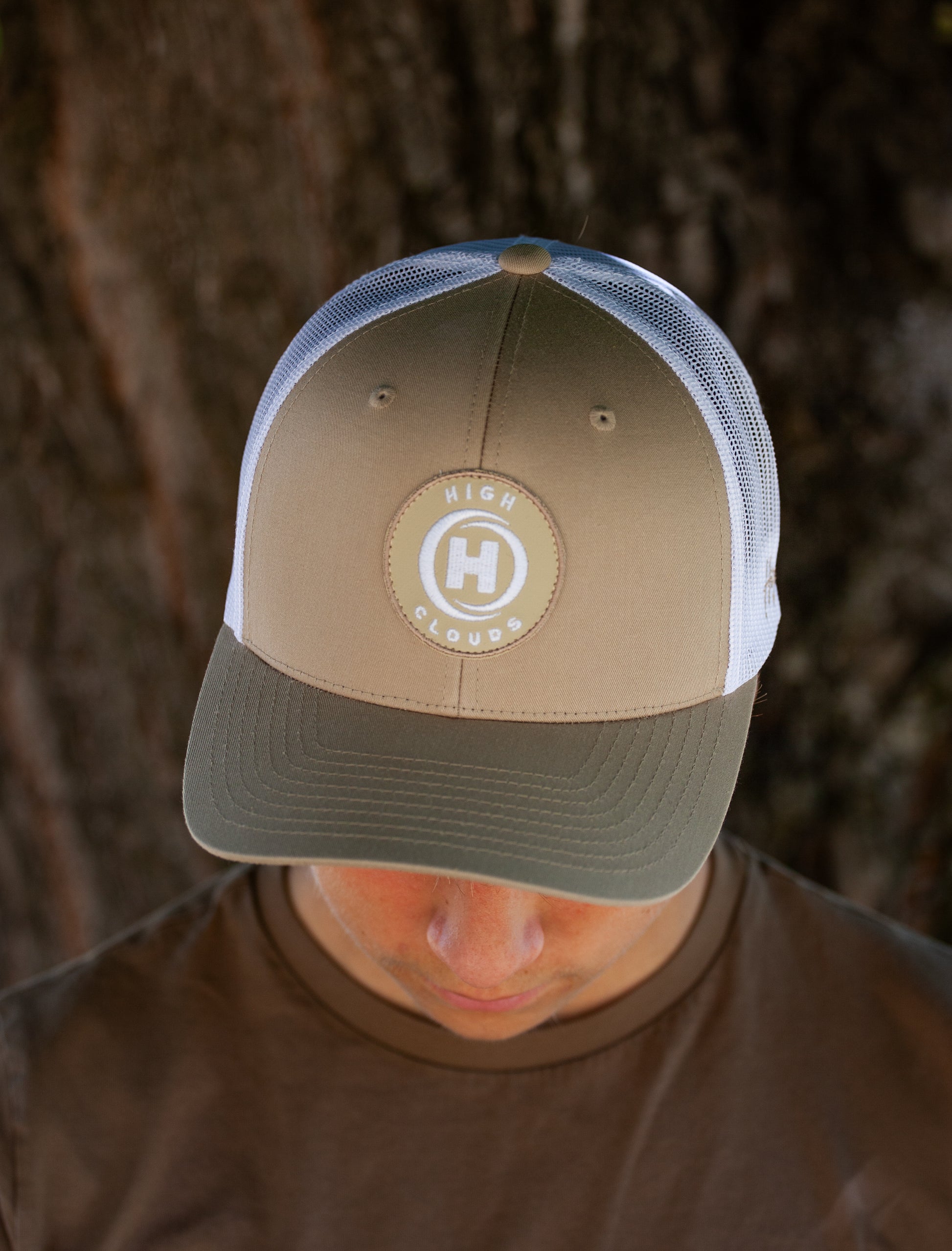 Khaki/Fehér sapka fehér HighClouds logóval az elején illetve a sapkával azonos színű az oldalán!